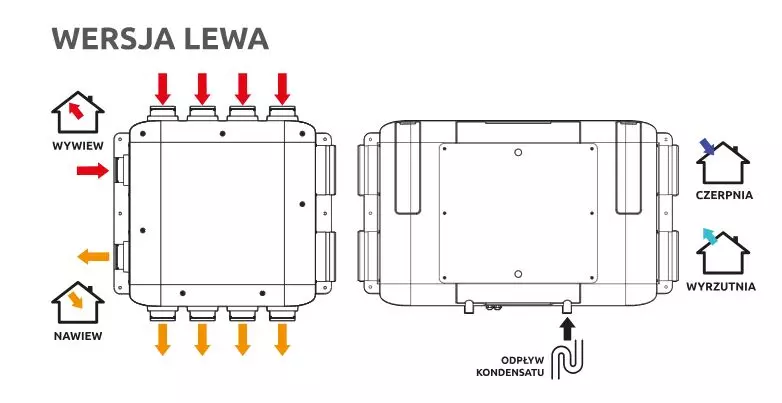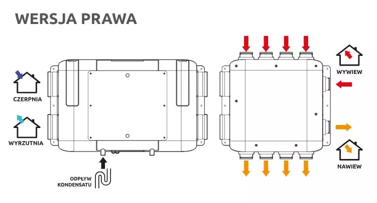 Dzięki elastycznym możliwościom montażu – naściennym lub stojącym (z opcjonalnymi nogami VKNAR) – centrala AQUILA doskonale sprawdza się zarówno w nowoczesnych domach, jak i większych obiektach użytkowych. Zaawansowana izolacja oraz szczelna konstrukcja skutecznie eliminują ryzyko przenikania zapachów i zanieczyszczeń z powietrza wywiewanego do nawiewanego.