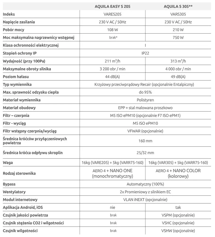 Centrala wentylacyjna AQUILA 205 (ścienna/stojąca)
