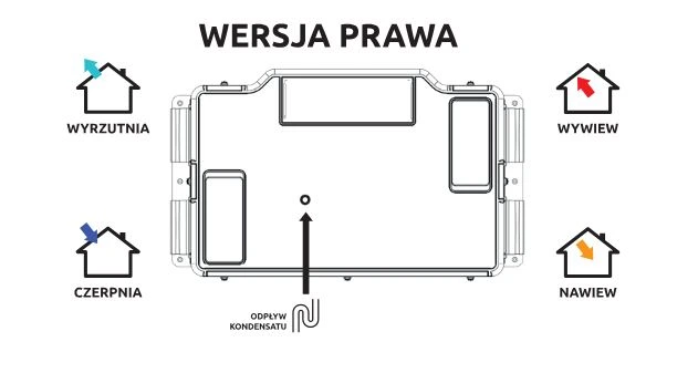 - Wymiennik przeciwprądowy o sprawności do 95% minimalizuje straty ciepła i zmniejsza koszty ogrzewania.