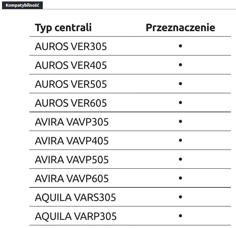 - Współpraca z centralą wentylacyjną AQUILA – automatyczna regulacja przepływu powietrza.