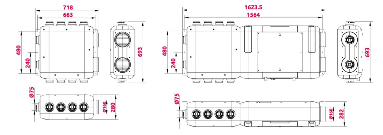 Produkt eliminuje konieczność stosowania tradycyjnych skrzynek rozdzielczych, co ułatwia montaż i pozwala na swobodne umiejscowienie w dowolnym punkcie systemu. Może być zespolony z centralą lub umieszczony w odległości, połączony kanałami Ø160 mm (wersja VARR75-160K).